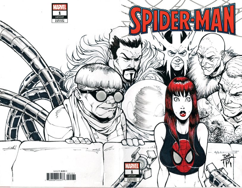 9x9 sketch cover art print of Mary Jane and the Sinister Six from Marvel Comics.